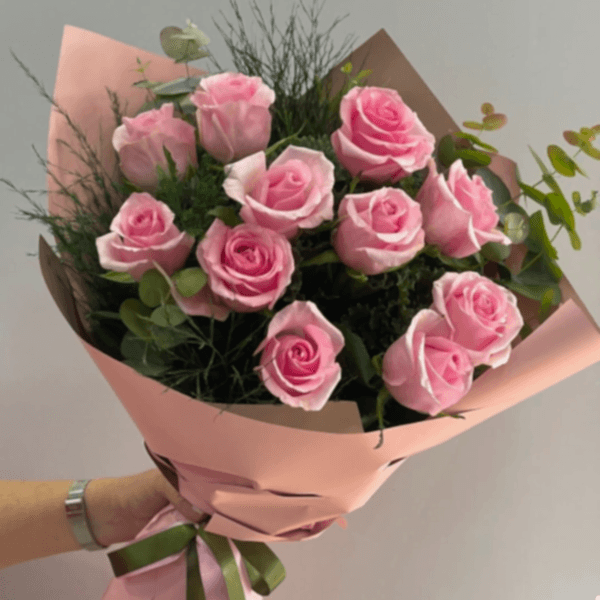 11 ADET PEMBE İTHAL GÜLLERDEN OLUŞAN ŞIK BİR BUKET